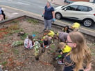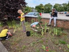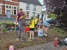 On the 4th, we left the hall in high spirits to join Neighbourhood Garden people and our tools and the brownies threw themselves into picking the litter, collecting dead/dying woods for the bug hotel and planting the plants to turn the plot into a garden.