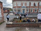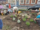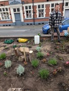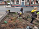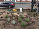 The Staffordshire Wildlife Trust Neighbourhood Gardens were wanting to set up a garden in a large brick planter that had just come into their possession. It was neglected, full of rubbish and unloved. it was opposite a pub and bordering the overspill carpark for the prison staff.