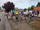 In the hour we had available to us, we transformed the plot into something to be proud of. While we were working, we were met by two lovely people from the pub who had seen us arrive and thought they could lend a hand. We put them to work and afterwards, they bought sweets for the girls.